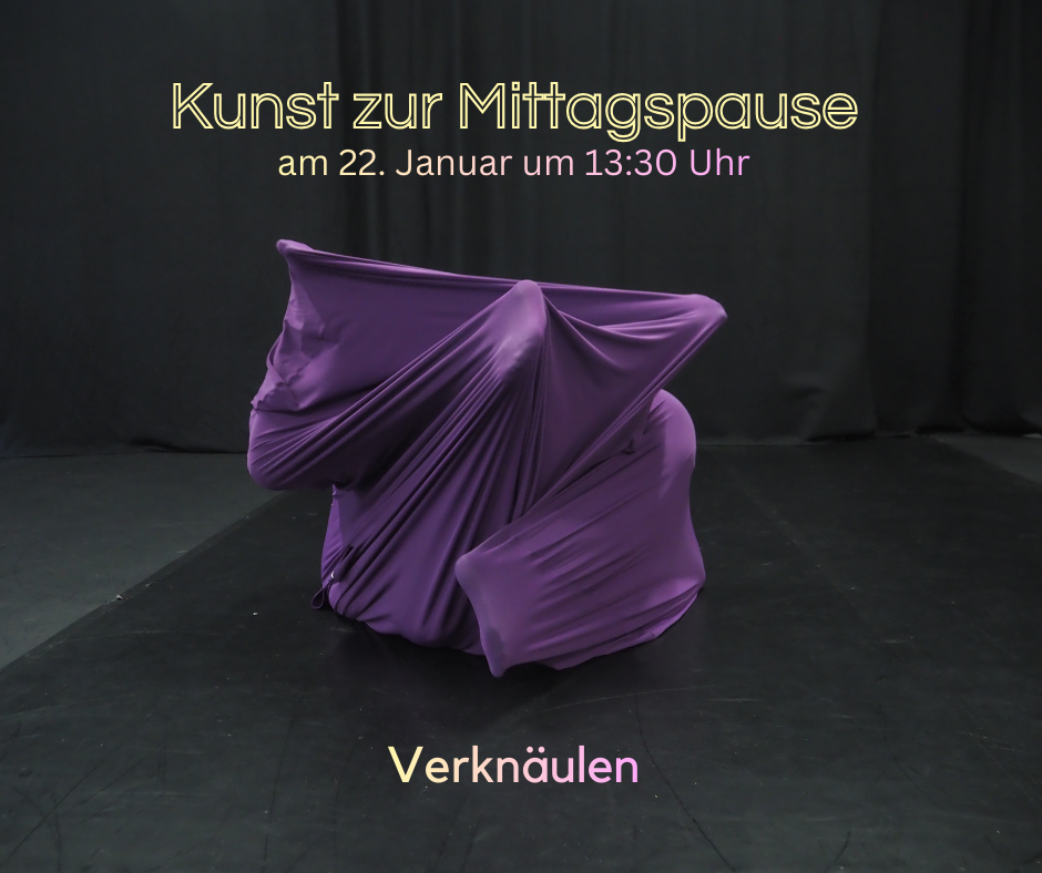 Kunst zur Mittagspause – eine kreative Stärkung Wann? Donnerstag, 22. Januar I 🕠 von 13:30 – 14 Uhr Wo? Plantage 13, Eingang 8 Was erwartet euch? Diesmal zeigen wir das Stück Verknäulen von Stina Hinrichs und…