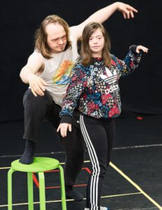 Bühennarbeit: Sich gegenseitig anschauen, Feed Back geben, kreativ sein.